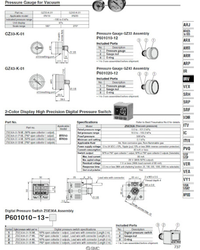 *, Những model cơ bản của van điều áp chân không SMC IRV: